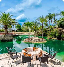 Relax by the pool, unwind at the tiki bar, and explore the lush grounds.